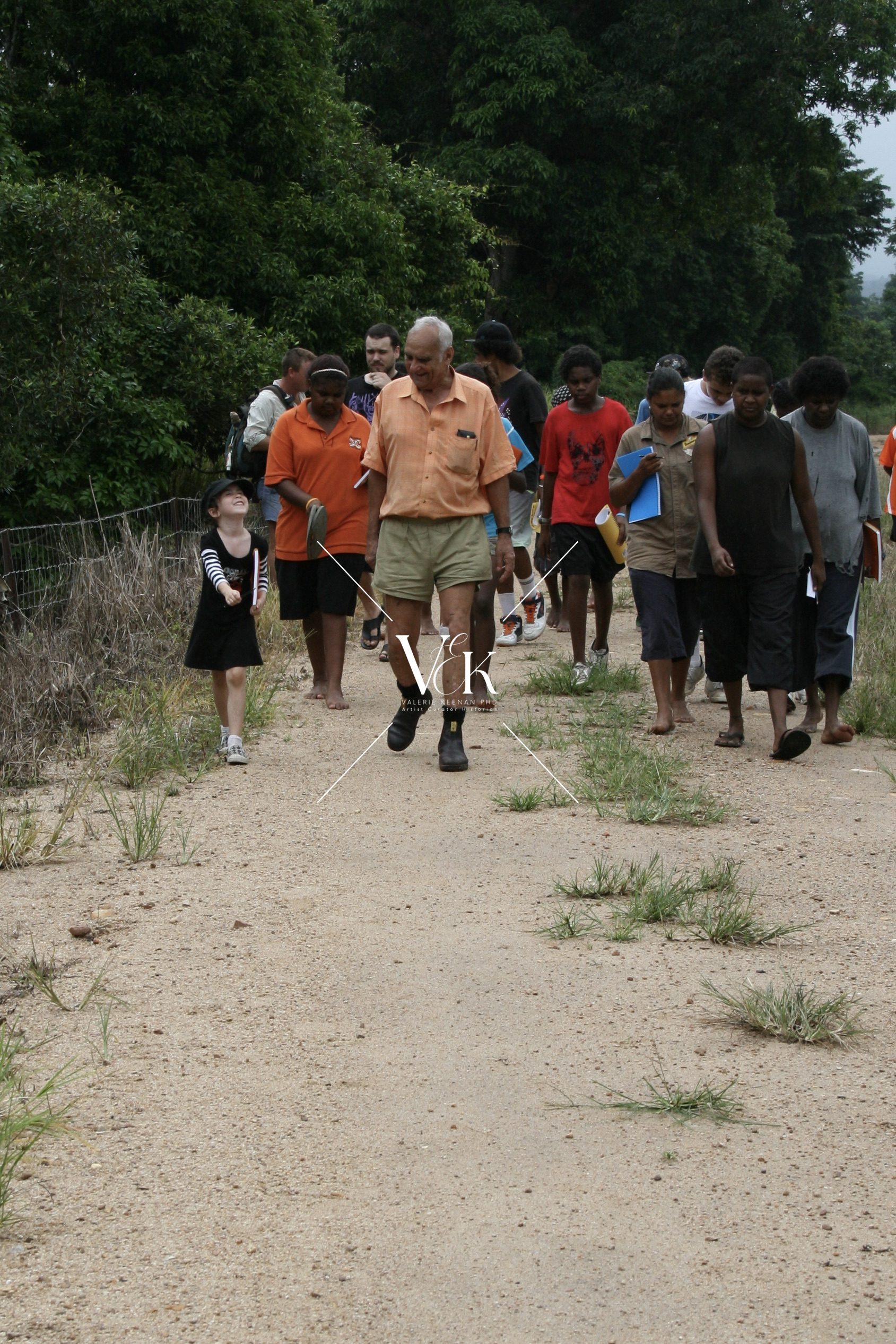 In collaboration with Jirrbal Elder Ernie Grant, Valerie coordinated an arts and cultural camp at Echo Creek . This initiative was rooted in the exploration of Indigenous culture and connection to the natural environment. A search for the tall and elusive bungganyu (zamia) tree which had foot ‘steps’ carved (marked) into the trunks by the old people and which are now rarely seen on the coastal plains. The fruit was a staple food and each tree was the property of specific familes and groups. The project was funded by Arts Queensland.